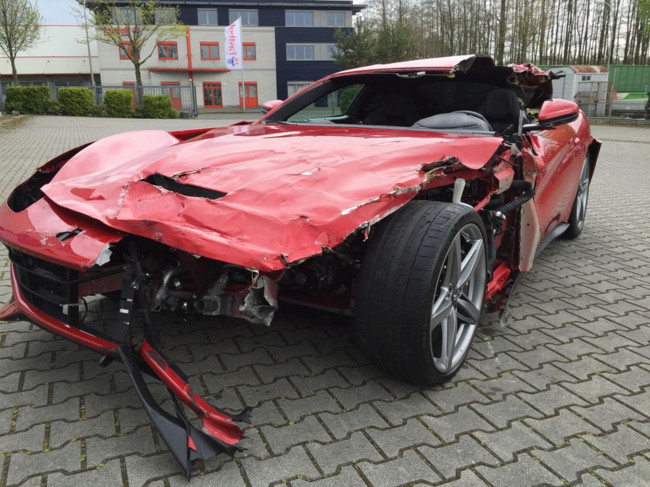 Advertencia. Estas imágenes pueden herir la sensibilidad de los más fanáticos de los coches del Cavallino Rampante. Cuando compras un coche de ocasión, debes hacerte a la idea de que puede venir con ciertos arañazos, algún que otro golpe, pequeñas abolladuras... o directamente un amasijo de hierros, como es el caso de este Ferrari F12 Berlinetta que está a la venta en Alemania.