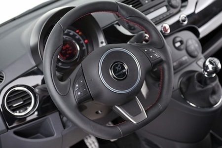 Una mirada al interior revela un trabajo de identificación: volante achatado en cuero con costuras en rojo, pedales de aluminio, alfombrillas de promoción y asientos con el bordado de la casa “Hamann” en la cabecera. ¿Demasiado macarra? Pues con las llantas negras mate yo lo encuentro delicioso. Eso si, me gusta más el Abarth esseesse.