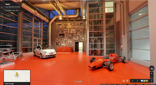 Utilizando la tecnología Google Street View —que en esta ocasión se ha convertido en Office View, o algo parecido—, podemos pasearnos por los corredores del Museo Abarth y atravesar paredes para llegar a cuartos "secretos" donde probablemente se estén horneando los nuevos proyectos de la firma del escorpión, todo esto sin necesidad de coger un avión rumbo a Turín.