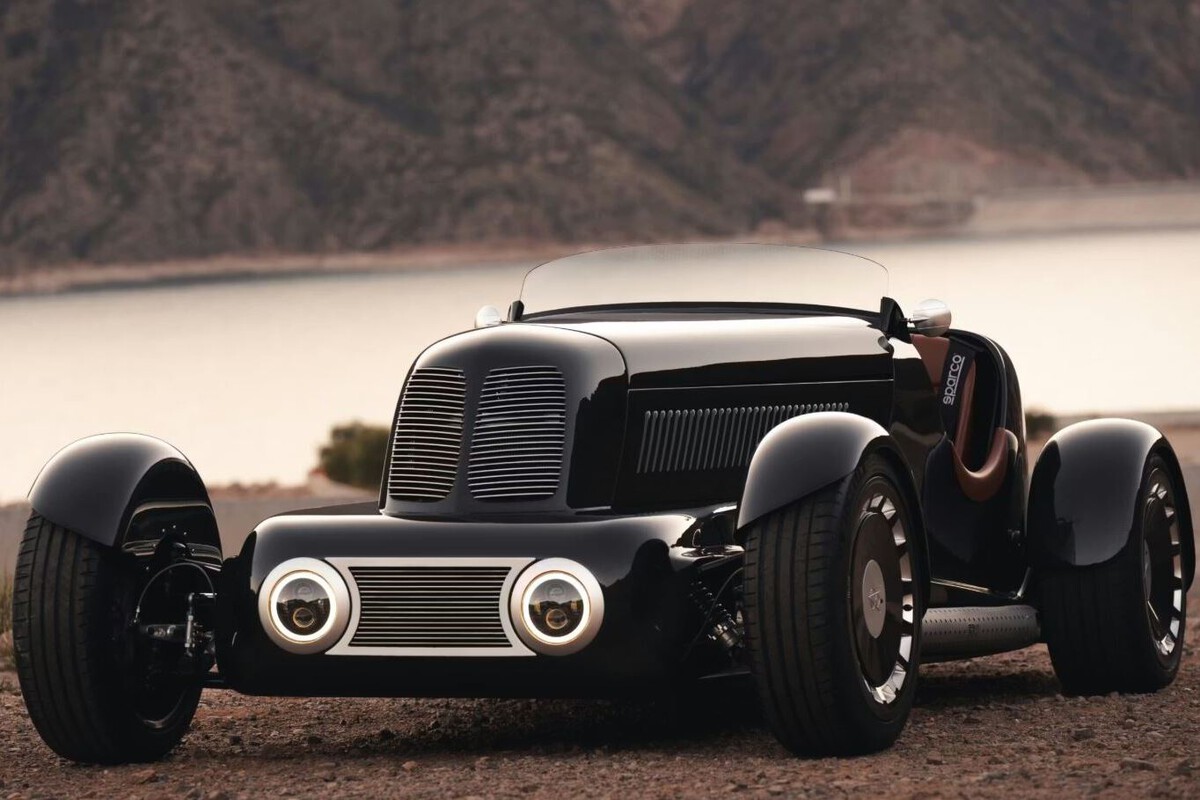 La carrocería ya no es de aluminio, sino de fibra de carbono, montada sobre un chasis tubular space frame. Bajo el larguísimo capó late un V8 Ford Coyote 5.0 actual, con alrededor de 480 CV, asociado a un cambio manual Tremec de cinco velocidades. Y nada de concesiones a la nostalgia mecánica: suspensiones independientes en ambos ejes, dirección asistida eléctrica y frenos Brembo heredados del Mustang GT350R garantizan un comportamiento muy alejado del de un coche de los años 30.
