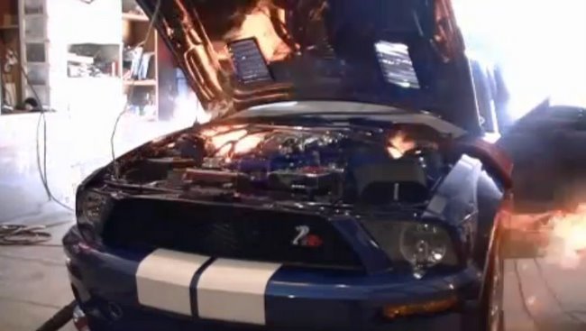 Personalmente esta escena me recuerda al momento en el que carburo un coche radiocontrol de gasolina. Si afinamos mucho la carburación, el coche correrá más, pero también aumentamos las posibilidades de acabar con nuestro motor en la basura. Lamentablemente para el dueño de este Mustang GT500, la reparación seguramente costará mucho más que en el caso de un coche teledirigido.