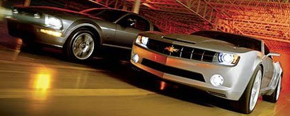 Ya no hace falta esperar hasta el 2009, año previsto para la salida del nuevo Chevrolet Camaro al mercado, para poder revivir las pony wars entre el Mustang y el Camaro, ya que la revista Motor Trend ha realizado una comparativa virtual entre los dos pony cars.