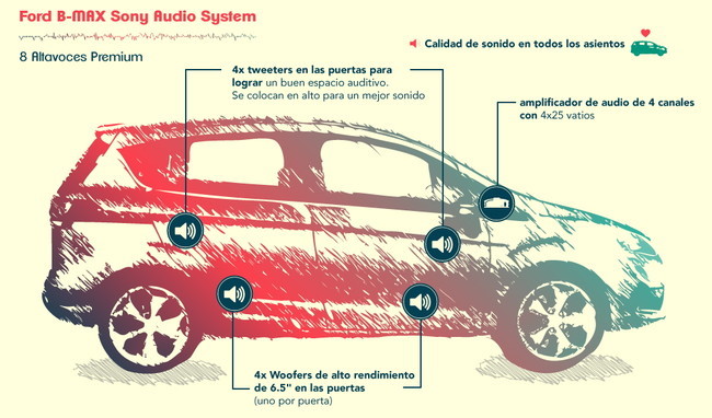 Aunque en los coches de gama alta es algo habitual tener equipos de sonido de alta fidelidad de serie o pagando aparte, lo cierto es que en segmentos inferiores es un terreno por explorar. Ford ha querido que su monovolumen pequeño B-MAX tenga un equipo de sonido que no tenga que envidiar a los de coches más caros.
