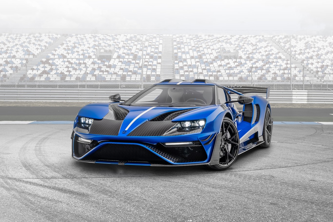 Teñido bajo un intensísimo color Bleurion Race, el Ford GT ha pasado por las manos del preparador germano después de que su antecesor haya coprotagonizado la película 'Le Mans 66'. Precisamente este Le Mansory es un tributo a los hechos ocurridos en Le Mans, un icono vivo del automovilismo y escenario de las gestas más grandes entre las que aquella del Ford GT40 que logró batir a la armada de Ferrari quedará para siempre en los anales de la historia y del cine.