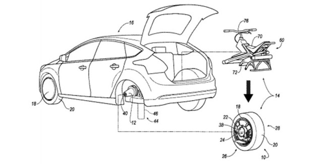 Esta semana nos hemos enterado de una nueva patente depositada por Ford (en junio de 2014 y aprobada recientemente) que parece haber sido ideada por dos ingenieros que estaban de cachondeo (o no). Al parecer, Ford, algún día podría pensar en convertir la rueda trasera de uno de sus coches en la base de un monociclo.