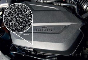 El plástico fabricado con tecnología MuCell viene de la inspiración de Ford en este caso del chocolate, ya que ha tomado como base las tabletas de mousse de chocolate para fabricar ciertos componentes de plástico y aligerar peso. Durante la fabricación del plástico y mientras el plástico está fundido, se inyecta gas que acaba formando burbujas microscópicas en el interior del plástico y formando un micro panel de abeja. Al final acaba quedándonos el mismo volumen de plástico con una menor densidad (al incluir aire en su estructura) y por lo tanto menos peso.