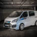 Tanto el paragolpes delantero como el trasero han crecido hacia abajo y el trasero aloja un difusor además de envolver a los dos escapes de doble salida cromada. También en la zaga encontramos un spoiler superior. Llantas OZ Racing de 18 pulgadas de diámetro, taloneras, suspensión Eibach 27 mm más baja en el eje delantero y 30 mm en el trasero para una Transit de todo menos normal.