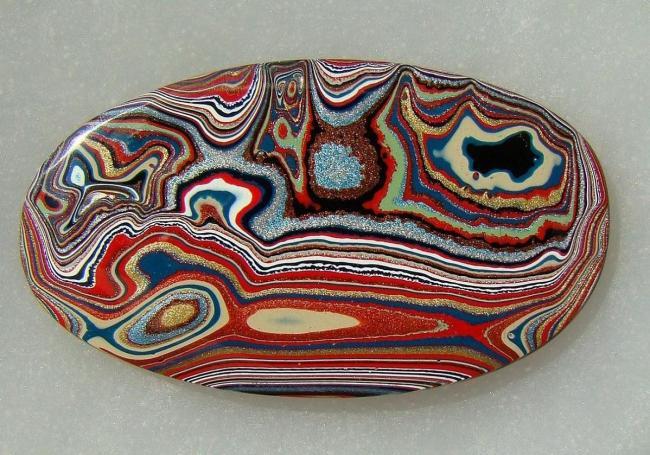 Sí, lo de Fordita viene por la marca que más material dio a lo largo de los años para esta maravilla estética, pero otros nombres que se le aplican son ágata de Detroit o ágata de Motor. Capa sobre capa, las más profundas de ellas habrán pasado por el horno en un centenar de ocasiones antes de adquirir el aspecto que nos muestran.