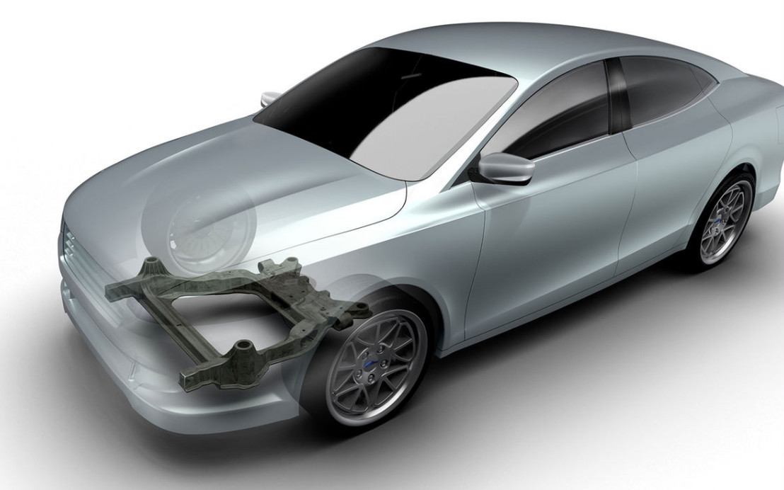 Fruto de la colaboración en investigación y desarrollo entre Ford Motor Company y el especialista Magna, este prototipo de subchasis fabricado en fibra de carbono supone un gran avance con respecto a los convencionales de acero. Además de ser más sencillo, con un 87% menos de componentes, este subchasis es también una tercera parte más ligero, concretamente un 34%.