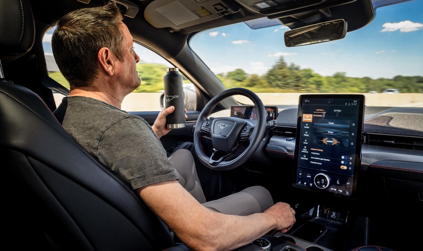 Active Drive Assist es la próxima evolución del control de crucero inteligente adaptativo con centrado de carril de Ford. Permite al conductor soltar las manos del volante en las secciones de autopista previamente mapeadas, de forma que beber agua en marcha, por ejemplo, no sea un problema para la seguridad.