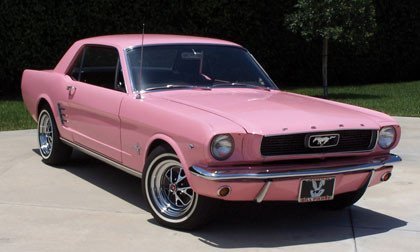 Pero el más curioso de todos es el de la foto, un 1966 Ford Mustang Coupe pintado en Playboy Pink. Según la web de Barrett-Jackson el color es original, pero yo he estado rebuscando en mis archivos y no he encontrado nada acerca de ese color y en la web de TheMustangSource tampoco sale nada acerca del Playboy Pink, y eso que es una de las webs más fiables sobre la historia de los Mustang.