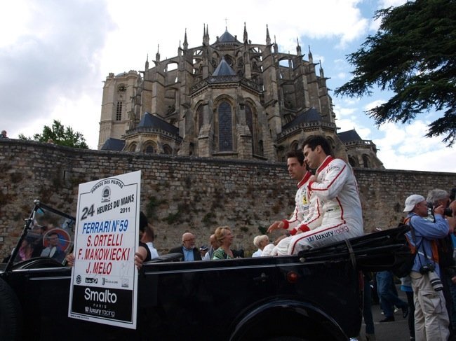 Sin formar parte directa de la carrera, el drivers parade es todo un acontecimiento en casi todas las pruebas de competición. Y en Le Mans es muy especial porque recorre el centro de la ciudad (no se hace en el circuito por motivos evidentes de ubicación del público) muy, pero que muy cerca de los aficionados, que casi pueden tocar a los pilotos mientras van desfilando. Otro atractivo es, claro, ver a Miss Le Mans en su carroza su coche, pero bueno, esa foto la reservamos para otra ocasión que aquí venimos a ver coches.