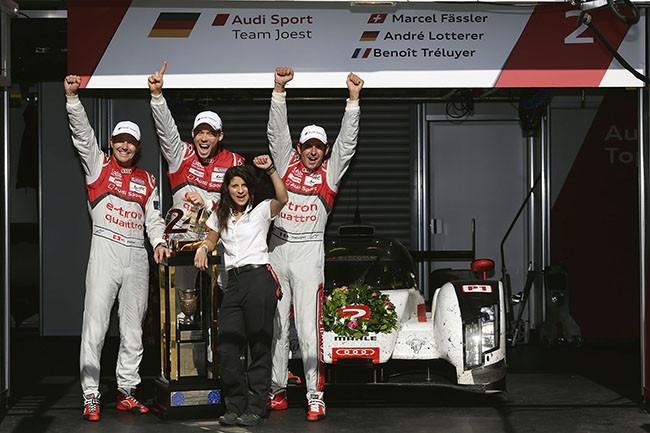 Por tercera vez, en cuatro años, la tripleta formada por Marcel Fässler, Andre Lotterer y Benoit Treluyer vuelve a hacerse con la victoria en la carrera de las carreras. A ese trío de pilotos hay que sumarle la que quizás sea la mujer más famosa del paddock de las 24 horas de Le Mans, Leena Gade. La ingeniera británica ya estuvo al mando del equipo en las dos últimas victorias, la última de un diesel, en 2011, y la primera de un híbrido, en 2012.