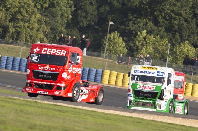 Pero el problema no fue únicamente perder toda la ventaja fraguada a lo largo de la temporada. Tras el accidente, el camión de Albacete quedó inservible y este fin de semana tuvo que disputar la última cita del campeonato en el circuito Bugatti de Le Mans con un camión híbrido que mezclaba partes de su camión con otras partes de camión de su compañero Markus Österreich. Tras las dos carreras del sábado, la ventaja volvió a bajar, esta vez a seis puntos, lo que implicaba que el título se iba a jugar el último día.