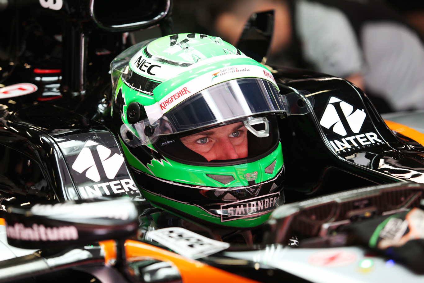 Una vez ya de vuelta al garaje. En la entrada del pitlane el de Force India mantiene la mirada en el cartel blanco y negro de "PITS" que marca el punto de comienzo del limitador de velocidad del pitlane. Después, echa una mirada a izquierda y derecha antes de accionar instintivamente el botón verde del volante que pone el monoplaza en neutral.