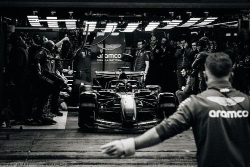 Apenas se han compartido imágenes. La más nítida, una que ha publicado Aston Martin en blanco y negro, aunque en cualquier caso la decoración del coche es totalmente negra. Pero aún así se puede observar una silueta a lo que habíamos visto hasta ahora en los test. La aerodinámica más radical de la parrilla, a falta de saber si también es eficiente.