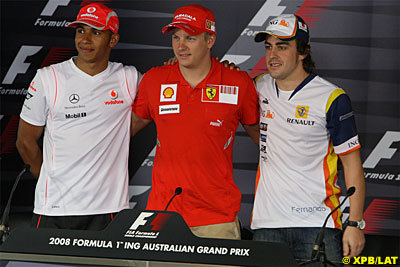 Esta pasada madrugada para nosotros, mediodía en Melbourne, los tres primeros clasificados del Mundial 2007, Kimi Raikkonen, Lewis Hamilton y Fernando Alonso, han sido los protagonistas en la conferencia de prensa de la FIA previa al inicio del GP de Australia mañana.