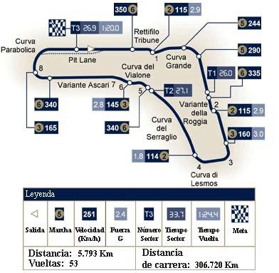 ¿Qué decir del templo de la velocidad? Pues para empezar, eso mismo, que se trata del circuito más rápido del campeonato, en el que las carreras duran poco más que una horita y cuarto, resultando esto en velocidades medias a una vuelta rondando los 240 km/h, y con eso queda casi todo dicho.