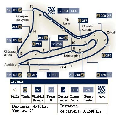 Para acabar, esta es una pista que no castiga especialmente el motor ni las gomas, aunque en este último punto cabe decir que la pista francesa es bastante sensible a la temperatura ambiente, variando bastante las condiciones de grip en condiciones meteorológicas cambiantes, que parece no va a ser el caso. Bridgestone llevará a Francia las gomas blandas y medias. Con uno de los pit-lanes que menos tiempo hacen perder del Mundial, las estrategias aquí pueden ser muy diversas, y si no, pensemos que Schumacher ganó en 2004 con una estrategia real de 4 paradas (ninguna fue imprevista, vaya). Lo lógico, como casi siempre, serían dos.
