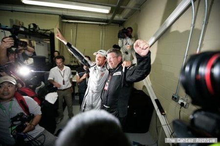 También hizo una buena remontada Jenson Button, desde la 13ª plaza hasta la 5ª posición final que le dio el título. El primer stint de Jenson fue realmente de piloto que se está jugando el Mundial y quiere conseguirlo a toda costa. El resto fue sacar la calculadora y esperar. Me extenderé más sobre Button en un post específico que le pienso dedicar. El otro británico de la categoría, Lewis Hamilton, también ejecutó a la perfección una estrategia de una parada que le alzó hasta la 3ª posición del podium saliendo desde atrás.
