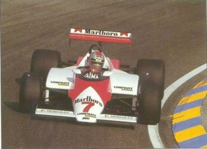 El de la foto es John Watson, uno de los pilotos del equipo en el 83 (Berger no era de McLaren en el 83...). En aquel año, tanto Watson como Niki Lauda competían con los motores Ford (Ford DFV, DFY y TAG), quedando quintos en el mundial de constructores, y respectivamente sexto y décimo.