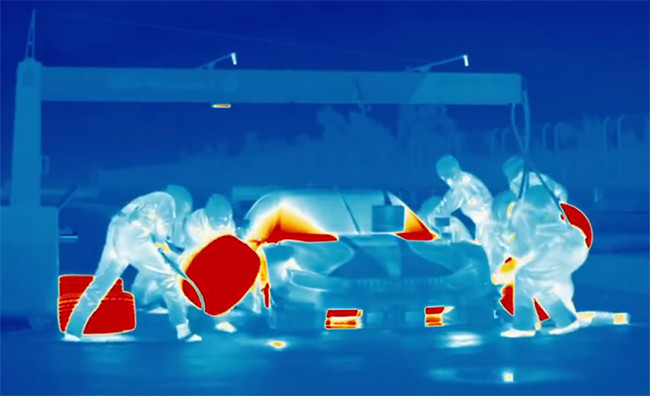 Pero como no todo en la vida es Fórmula 1, hoy os traemos un vídeo realizado con una cámara térmica cortesía de BMW Motorsport. La marca alemana nos regala un estás imágenes de un pit-stop de uno de los BMW M4 del DTM a base de escala de rojos y de azules.