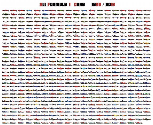 Un regalo perfecto puede ser el que os traemos hoy. Un poster con todos los Fórmula 1 desde 1950 hasta la temporada actual. Y cuando digo todos, son todos, de cada una de las escuderías, y no esos más pequeños que sólo tienen los campeones de cada año. Sin duda un gran trabajo de recopilación que podréis encontrar en la comunidad del juego “miniracingonline” y que si lleváis a una tienda especializada seguro os podrán imprimir y realizar un bonito poster o incluso cuadro con él.