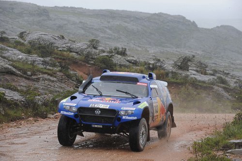 El francés se puede ir despidiendo del título en 2010 salvo catástrofe, puesto que el golpe recibido por parte del trío de Volkswagen como guinda a la avería ha sido colosal. Pues Nasser Al-Attiyah ha sido ni más ni menos que el tercero de la etapa de hoy. Un podium muy azul el de hoy. En cuarta posición llegaba Robby Gordon el vencedor de ayer y líder en Open a apenas 5 minutos de su compatriota Miller. Se nota que en el desierto entre arena el proto Hummer H3 está en su salsa.