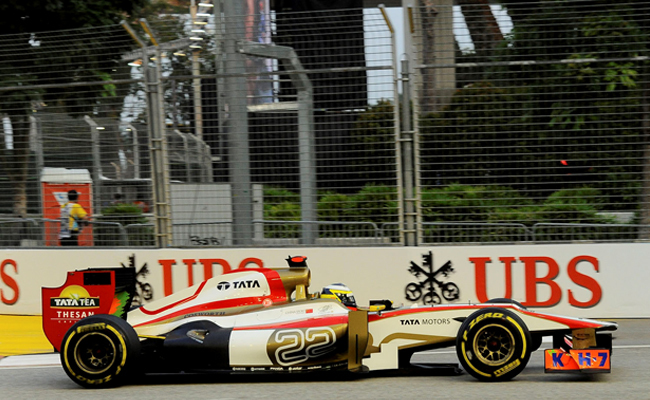 Después de la sesión clasificatoria de ayer, no parecía que los HRT fueran a tenerlo fácil para luchar con Marussia, así que nadie esperaba una carrera sencilla. En particular Pedro de la Rosa avisaba de los posibles problemas de frenos, antes de empezar. Al final, más competitivos de lo previsto pero también con una pequeña decepción final que privó a Pedro de lo que habría sido un muy buen resultado en el circuito Marina Bay. Complicada carrera para HRT entonces.