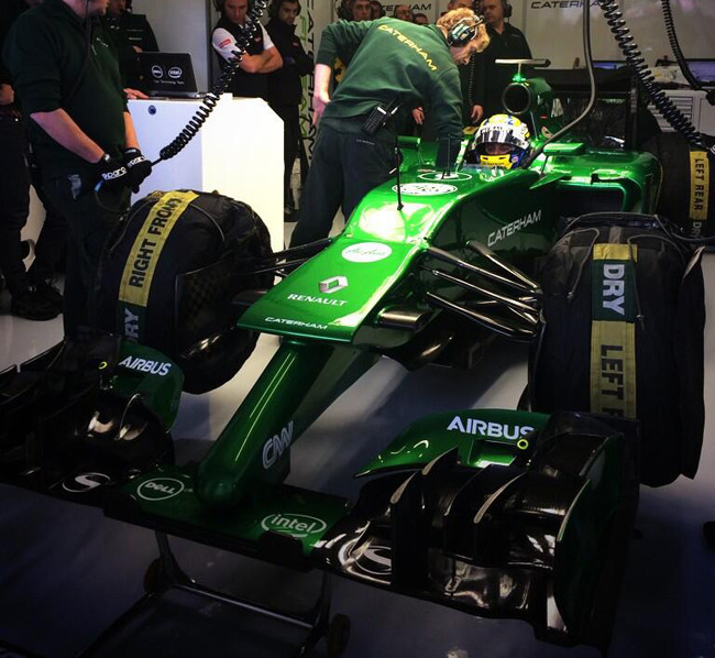 Hace escasos segundos, Caterham ha desvelado la primera foto de su monoplaza para la temporada 2014, el CT05, y ya podemos decir que representa la sorpresa, con mayúsculas, de los diseños vistos hasta el momento. Desde Caterham han buscado un frontal de lo más novedoso. De esos que resultan un éxito, y por tanto, una genialidad, o que por lo contrario se estrellan, figurativamente, de forma estrepitosa. Aunque no venga a cuento, esto hace que me venga a la cabeza el fracaso del morro morsa que Antonia Terzi diseñó para el Williams FW26.