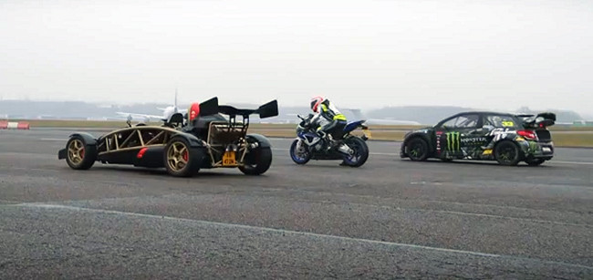 Hace ya unas semanas, Liam Doran colgaba en su facebook la imagen de la salida de una carrera de aceleración entre su Citroën DS3 de RallyCross, el impresionante Ariel Atom y la rapidísima BMW HP4. Tras un tiempo de espera, por fin tenemos el resultado de esta particular Drag Race. Hagan sus apuestas antes de ver el video ¿Cuál creéis que ganará?
