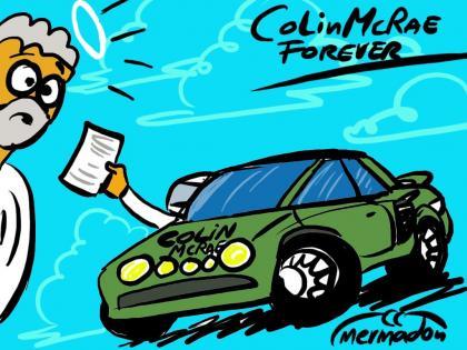 Me había guardado este sensacional dibujo que Mermadon realizó una vez confirmada la muerte del piloto escocés. Y el motivo es bien sencillo: se acercaba el Rally Catalunya-Costa Daurada, y era en la previa a esa cita del Mundial de Rallyes cuando quería hacer este particular homenaje a Colin McRae. El porqué es bastante sencillo: tuve la suerte de poder disfrutar de Colin en directo por las carreteras catalanas, y desde luego que eso es algo que no se me olvidará nunca. Y seguro que a los que lo hayáis visto alguna vez en directo tampoco.