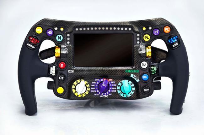 Los ingenieros de la escudería alemana no solamente se enfocaron en la mecánica y en la aerodinámica de su nuevo coche, su innovador volante, sencillo si se compara con el resto, representa lo más avanzado de la tecnología. Destacan su tamaño, su diseño extraplano, los tres interruptores rotativos y su pantalla LCD de 4 pulgadas. Resulta sorprendente que con la complejidad de tecnologías involucradas en los monoplazas de esta temporada, Mercedes AMG presente un volante tan sencillo.