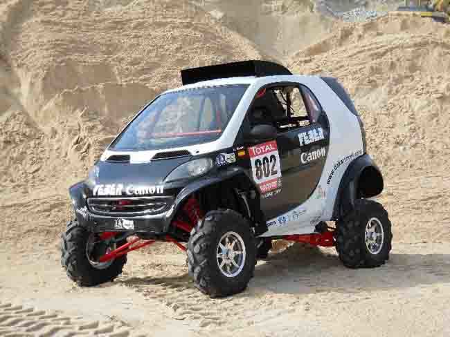 Esta semana estamos que lo tiramos con nuestras Curiosidades en Competición, especial Dakar. Tras el buggy del Qatar Red Bull Team o el buggy de Laurent Fouquet, hoy es el turno de un prototipo muy particular y de origen español. El Feber Smart Team utilizará en el Dakar 2013 un buggy monoplaza con el aspecto del urbanita Smart Fortwo.