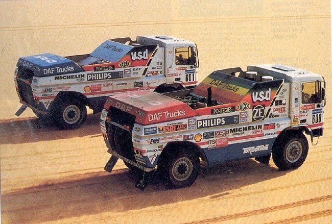 De Rooy padre consiguió la victoria en 1987, su primera y única, con el DAF Turbo Twin II. Un año después su carrera en el Dakar sufrió un revés que lo alejó durante más de una década. En la edición de 1988, los DAF Twin Turbo X1 y X2 llegaron a su punto álgido. Con 1220 CV, los DAF superaban en velocidad a los mejores coches.