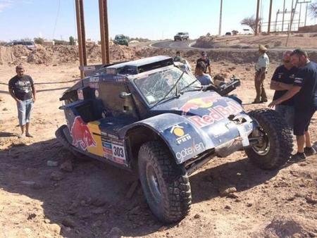 De esta forma Carlos Sainz confirmaba en su cuenta de twitter su abandono en la edición 2014 del Dakar. El piloto español sufría ayer uno de esos problemas que en la lógica le hubiera dejado fuera de la prueba. Pero el trabajo de SMG hizo que esta mañana, Sainz pudiera salir de nuevo a pista.