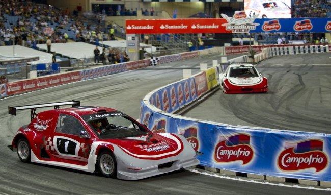 En la tarde noche de ayer, el estadio Vicente Calderón fue el escenario del Stadium Race. La Race of Champions al estilo español tuvo buena acogida entre el público. Es difícil llenar un estadio como el del Atlético de Madrid (55.000 asientos), pero aún así las 15-20 mil personas que se dieron cita, pusieron la nota de color al evento.