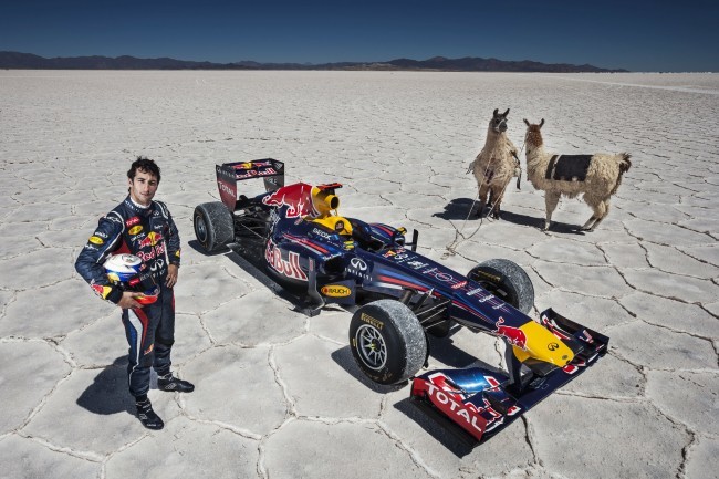 Pocos lugares le quedan por visitar a Red Bull y a su larga estrategia de promoción. La escudería de los toros rojos ha rodado en el circuito sin terminar de Austin y por el túnel de New Jersey entre otros. Pero ahí no termina la cosa, porque en un afán de continua superación (y de continua estrategia de Marketing) Daniel Ricciardo ha rodado con el RB7 sobre las casi infinitas salinas argentinas.