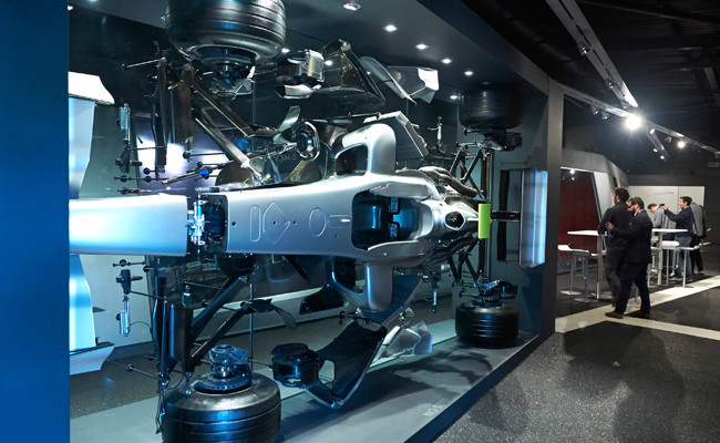 La visita de Motorpasión F1 a Brackley comienza, después de una rápida introducción y la entrega del pase pertinente, por una de las secciones más secretas de la sede de Mercedes AMG F1. No tanto porque las otras sean menos secretas pero sí son menos distintas a las de los rivales. Por lo tanto, donde en otras secciones se puede tomar una foto de un pasillo (el fotógrafo oficial, no los invitados, claro), en esta sección esto está prohibido por completo. Se trata del simulador, una de las joyas de la corona del equipo Mercedes.