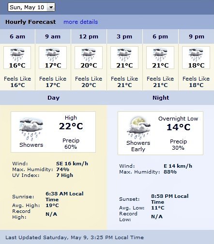 Mal, mal, mal… ¡muy mal! No me gusta nada ver a estas alturas, a las puertas del que puede ser uno de los grandes premios más disputados, que ahora salgan predicciones de lluvia para mañana y asegurando tan alta probabilidad de precipitaciones: hay un 60% de probabilidades de que llueva mañana por el área de Barcelona. Y lo malo es que la horquilla horaria de probabilidades altas es muy amplia como se puede ver en el gráfico de The Weather Channel.