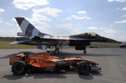 Aunque era algo que ya comentábamos cuando anunciábamos el reto de Spyker al caza F16, nos equivocamos al predecir que incluso en la distancia corta el caza F16 no iba a tener rival. 10.000 personas se acercaron al evento para ser testigos de otro duelo entre un avión terrestre y uno aéreo.