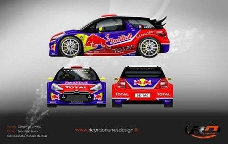 Es el caso que os traemos hoy. El Citroën DS3 WRC salido de la imaginación de uno de los mejores diseñadores gráficos portugueses, Ricardo Nunes, al menos en cuestión de coches de rallyes, y con una línea continuista en la que se mezclan los colores oficiales de la marca gala y los de Red Bull. La verdad es que poco a poco me voy acostumbrando al nuevo DS3 y dejando en el olvido mis queridos Xsara WRC, tal y como me ocurrió cuando entró el C4.