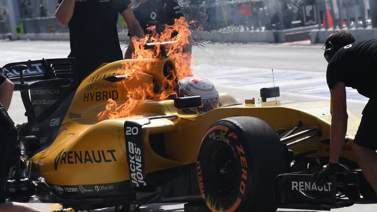 Magnussen leaps to safety in pit lane fire drama https://t.co/O1h7YsZfKM pic.twitter.com/nLHy1I20DK