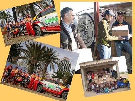 Afortunadamente para ellos, algunas de estas iniciativas han seguido adelante, y así aunque los pilotos oficiales Mitsubishi Ralliart y KTM patrocinados por Repsol no están compitiendo, se acercaran ya están en casa, la caravana solidaria organizada por la petrolera española sigue adelante, y repartirá las 14 toneladas de material médico y sanitario, en principio todo el material iba a quedar en Marruecos, pero finalmente la caravana llegará a Nuakchot la capital de Mauritania, y Nani Roma y Marc Coma estarán allí para entregar el material.