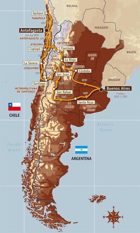 Ahora la organización ha confirmado que el trazado volverá a transcurrir entre Chile y Argentina. Buenos Aires volverá a ser la ciudad de origen y destino, ya que el raid se ha pensado de nuevo como un bucle, aunque esta vez girando en sentido contrario a las agujas del reloj. Tras cruzar los Andes, los participantes se dirigirán al desierto de Atacama donde les espera la parte dura de la prueba con cinco etapas maratón sin enlaces de arena. La prueba constará con un total 8600 kilómetros, 5200 de ellos cronometrados.