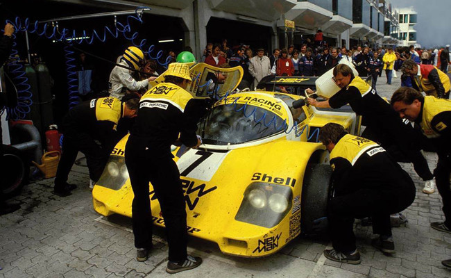 Fue con motivo de la cuarta ronda del campeonato, los 1000km de Nürburgring, en julio. Ayrton Senna venía de abandonar en el Gran Premio de Dallas y Joest le ofreció la posibilidad de compartir el coche número 7 con Henri Pescarolo y Stefan Johansson, quien curiosamente correría en la Fórmula 1 con el Toleman de Senna en Monza más adelante ese mismo año. La oferta era demasiado tentadora ya que el número 7 de Joest Racing bajo patrocinio de New-Man llegaba como líder del campeonato tras un segundo puesto en Silverstone y sobre todo tras ganar las 24 horas de Le Mans.