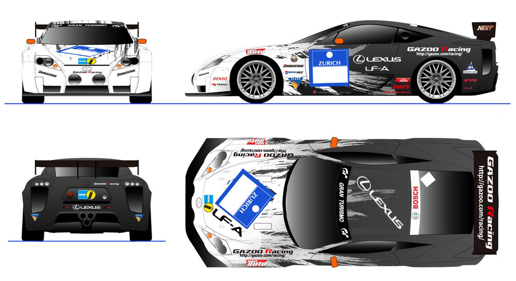 Y más o menos a un mes de la mítica prueba de resistencia, conocemos el boceto de la que previsiblemente será la decoración que lucirá este año el exótico Lexus LF-A. Dentro del equipo GAZOO Racing el Lexus LF-A competirá en SP8, una categoría en la que uno de los requisitos es que se corre con motores de estricta serie. El motor sigue siendo un V10 de 4.805 c.c. con una potencia de unos 500 CV en posición delantera-central, tracción trasera y con una caja de cambios secuencial de accionamiento manual. Un detalle interesante es que los datos que se recopilen durante la prueba serán una experiencia y fuente de ideas para extrapolar al futuro modelo de producción.
