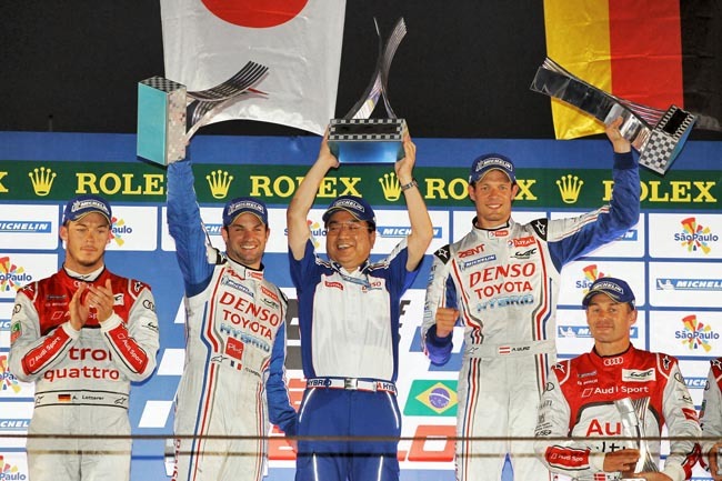 Tras su "fracaso" en Le Mans, Toyota va cogiendo poco a poco el tono del TS030 Hybrid y en Interlagos el prototipo japonés fue la referencia. Pole y victoria que refrenta el trabajo que está realizando Toyota. En esta ocasión Audi no pudo más que aspirar a los otros dos escalones del podio. Una sensación que tiene que ser extraña para la marca de los cuatro aros máxime cuando el Toyota TS030 Hybrid de Alex Wurz y Nicolas Lapierre era el único en la contienda.