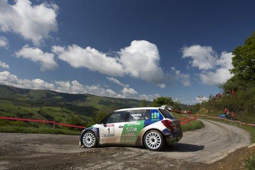 Tras los dos tramos nocturnos de ayer, la competición se retomaba esta mañana con Ojeda marcando de nuevo el ritmo. Hevia intentaba plantarle cara, pero empezaba a tener problemas eléctricos en su Skoda Fabia que le terminaban dejando fuera de carrera. Vallejo también continuaba con problemas de grip, esta vez acrecentados por que el lucense montaba neumáticos de seco sobre las anegadas pistas cántabras.