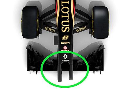 Según Scalabroni, la propuesta frontal de Lotus luce muy original, sobre todo los dos "dientes" asimétricos, pero tal configuración provocará inestabilidad en los cambios rápidos de dirección, ya que ambas placas frontales son muy largas, así que el piloto se verá forzado a corregir su trazado cada vez que gire el volante con rapidez.